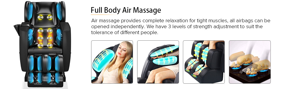 - Full Body Massage:Air bags kneading massage,squeeze shoulders,arms,buttocks,legs