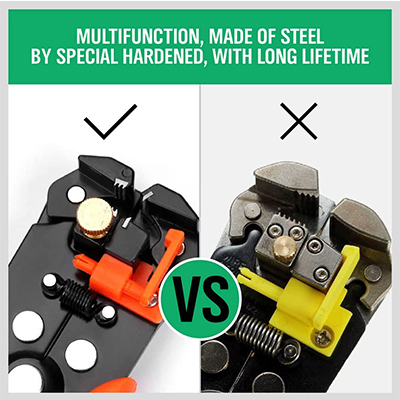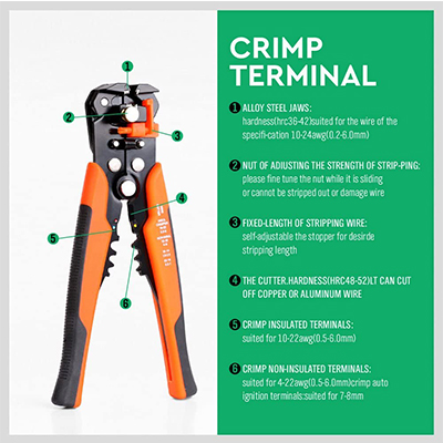 • Self Ajusting - Come with self-adjusting jaws ideal for copper and aluminum cables from 10-24AWG (0.2-6MM2). Thumb wheel micro adjusting swivel knob to strip wire smaller than 24 AWG.
