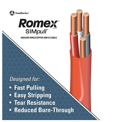 • Southwire's SIMpull® designed for easier pulling, resulting in easier installation. This Romex wire is UL-listed.