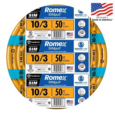 Product Name Southwire Romex SIMpull 50-ft 10/3 Non-Metallic Wire (By-the-Roll)