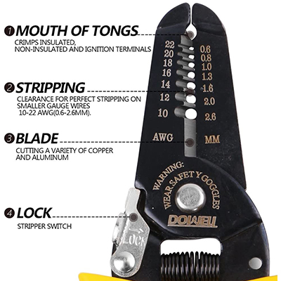 DOWELL 10-22 AWG Wire Stripper Cutter Wire Stripping Tool And Multi-Function Hand Tool,Professional Handle Design And Refined Craftsmanship. DOWELL 54939