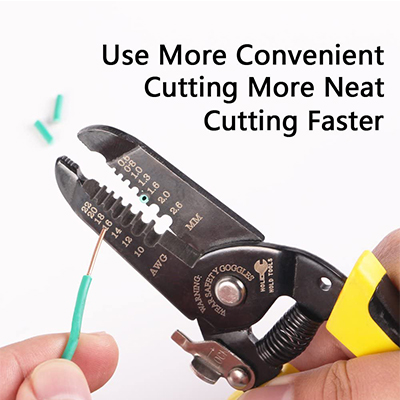 • WIRE STRIPPER:Ideal for copper and aluminum cables from 10-22 AWG.Built in wire cutter.