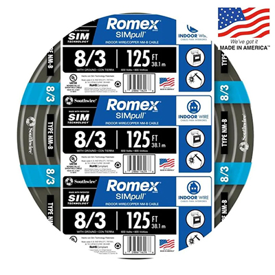 Southwire Romex SIMpull 125-ft 8/3 Non-Metallic Wire (By-the-Roll)