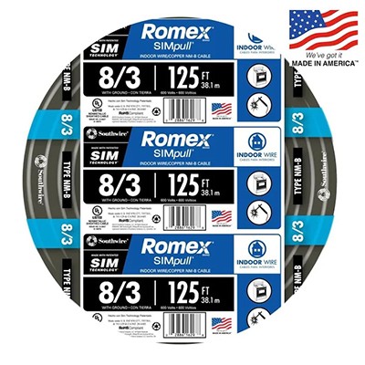 Product Name Southwire Romex SIMpull 125-ft 8/3 Non-Metallic Wire (By-the-Roll)
