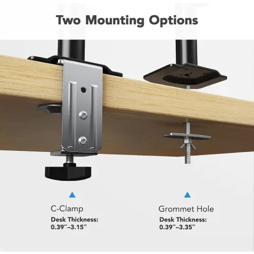 • Secure Mounting Options: Includes both C-clamp and grommet base options for versatile installation on various desk types.