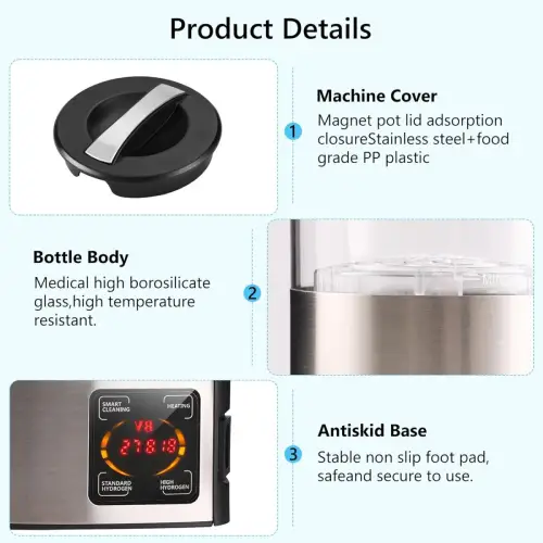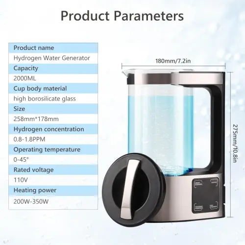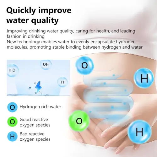 • Portable & Easy to Use: Ergonomic design with simple operation, making it easy to enjoy hydrogen water anywhere.