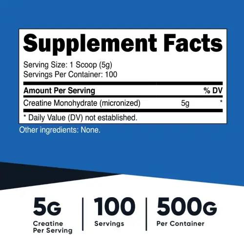 • 25g of Pure Creatine per 100 Servings: Supports increased muscle size, power, and recovery.