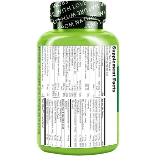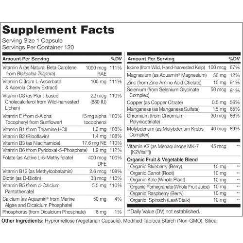 • Key Ingredients: Vitamins A, C, D3, E, B-complex, zinc, selenium, organic greens, and botanical extracts